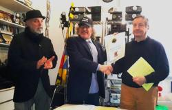 Tra i riconoscimenti ai convenuti, nella foto a lato, anche la consegna della benemerenza per la collaborazione al Presidente dell’Associazione “Amici delle Mura di Bergamo“