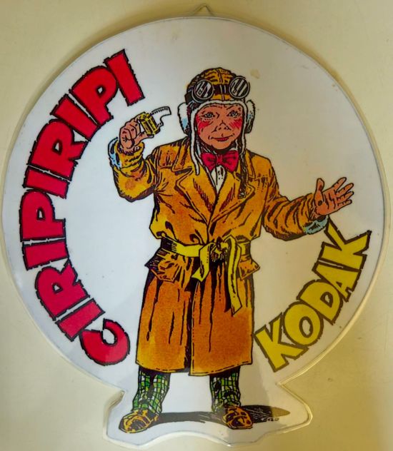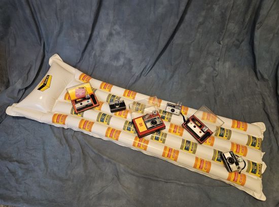 - Gadeget vintage anni ’80: materassino gonfiabile con grafica pubblicitaria a tema rullino fotografico Kodak.