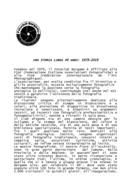Proseguono incessanti le iniziative del Fotoclub Bergamo che arrivano quest’anno a compiere i quaranta anni!